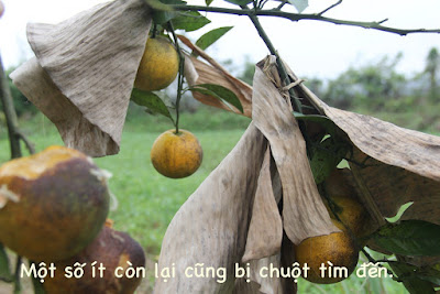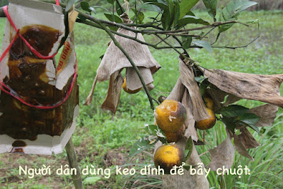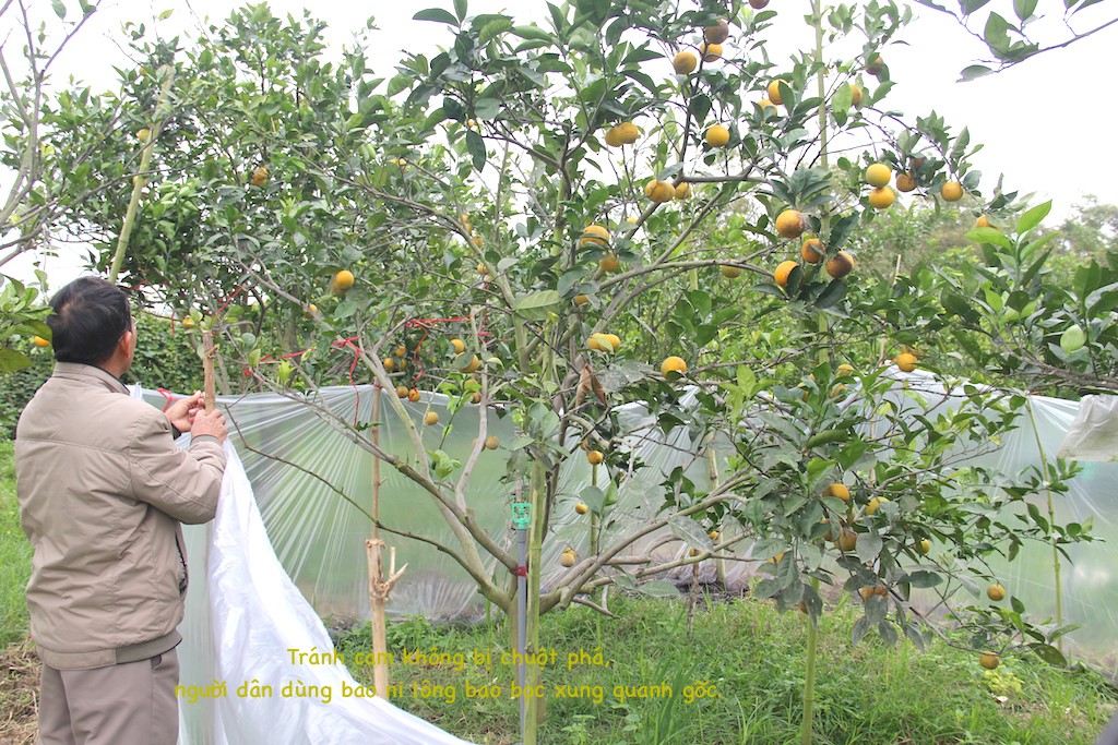 Để ngăn chặn tình trạng cam bị chuột phá hoại, nhiều biện pháp được ông Hưởng cũng như người dân nơi đây làm như đặt vỉ keo dính, bọc quả, vây nilong xung quanh cây, dùng thuốc vi sinh diệt chuột… Tuy nhiên, những biện pháp đó cũng không đem lại hiệu quả là bao.